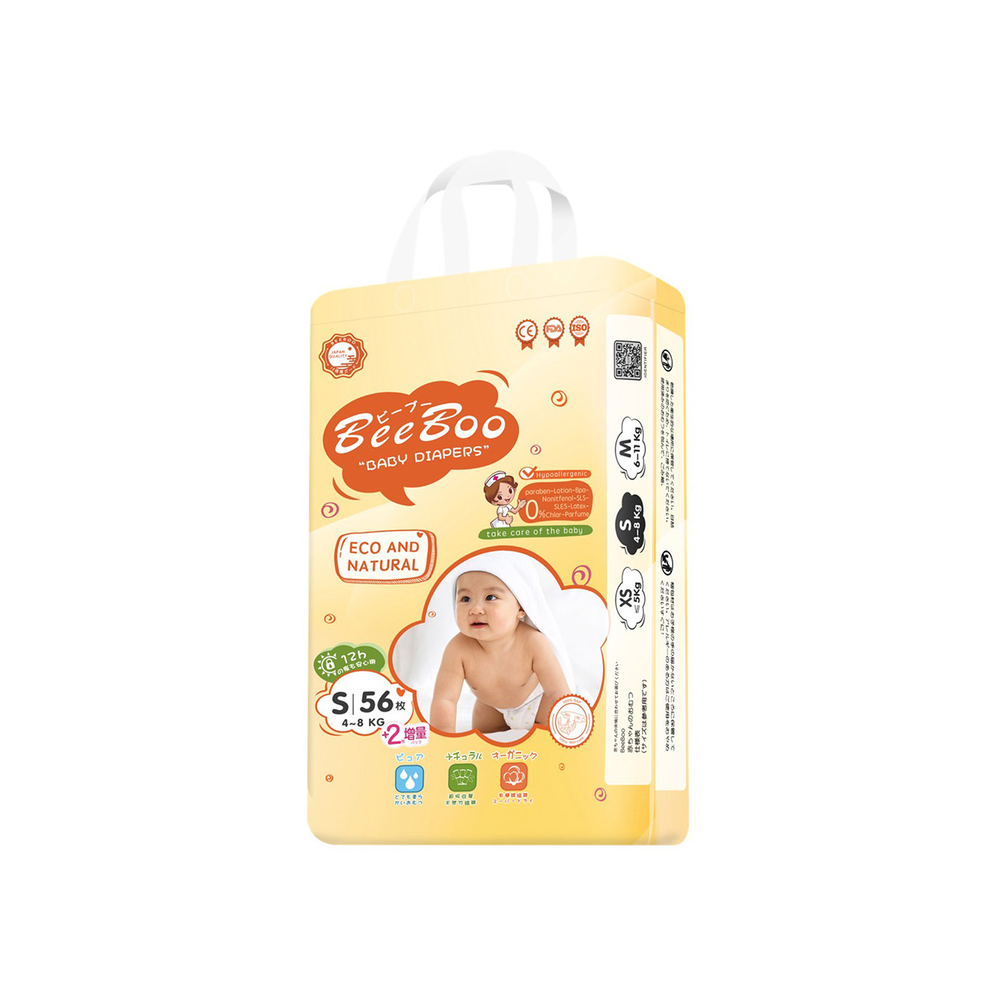 Bỉm – Tã dán BeeBoo size S 56 miếng (Từ 4 – 8kg)