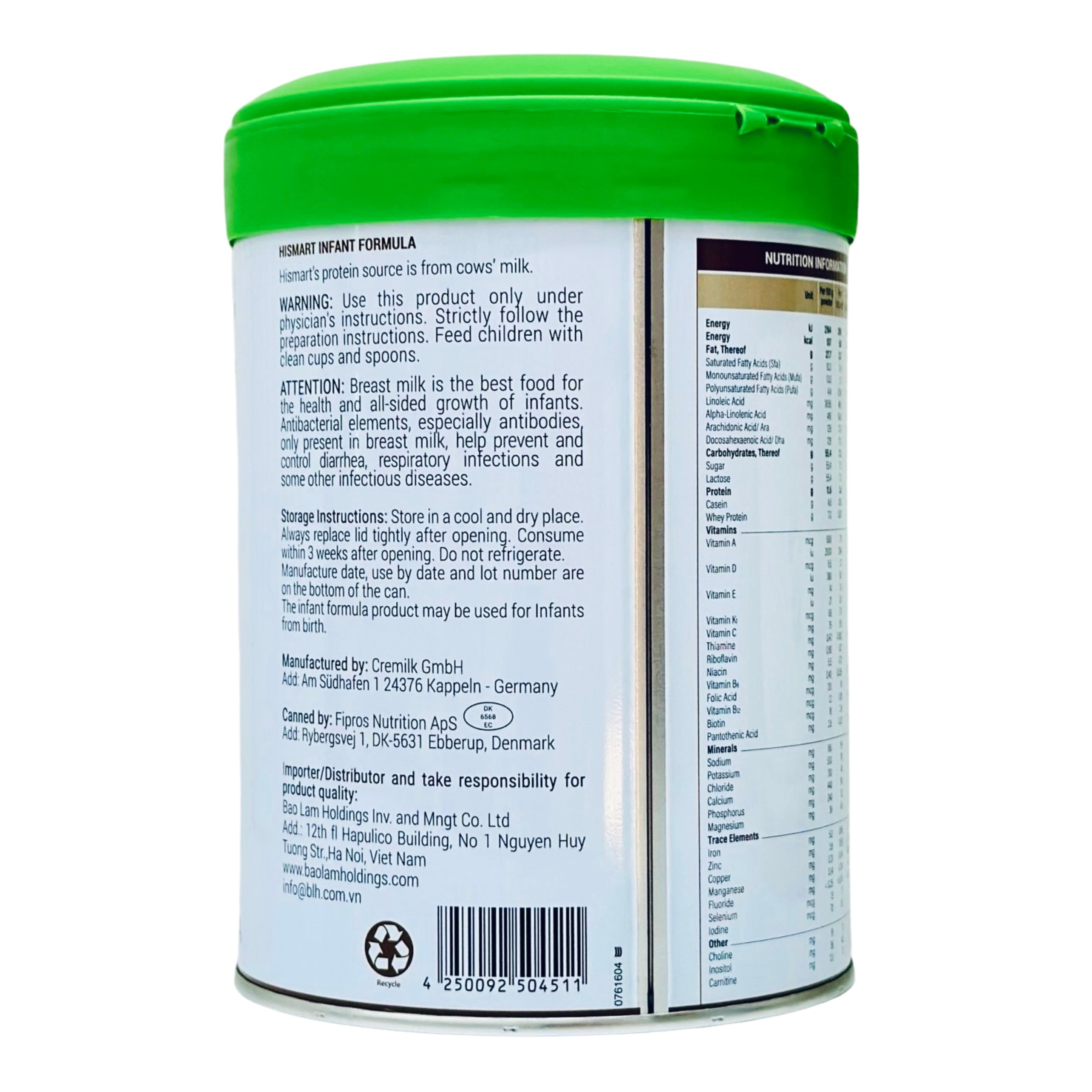Hismart Germany Milk với công thức đặc biệt bổ sung năng lượng cao, chú trọng phát triển trí não song hành cùng chiều cao.