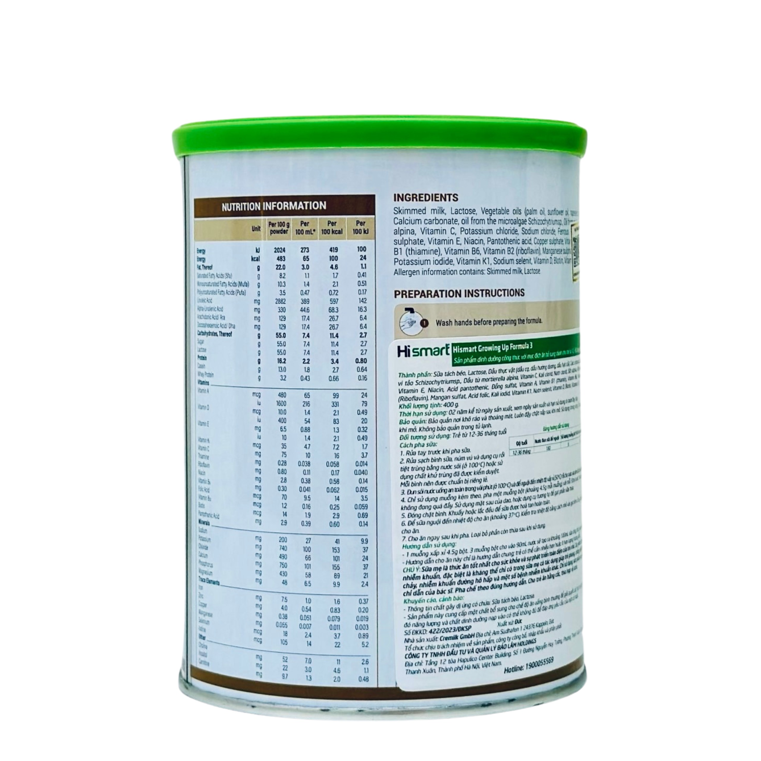Hismart Germany Milk với công thức đặc biệt bổ sung năng lượng cao, chú trọng phát triển trí não song hành cùng chiều cao.